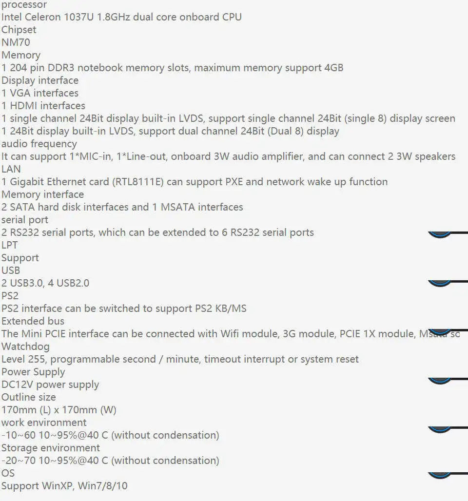 1037U New Original Mini-ITX Mainboard For IntelCPU IPC SBC Embedded Motherboard Ivybridge with 6*COM 1*Giga LVDS DC12V