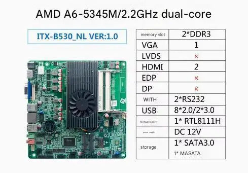 A6-5345M Mini-ITX Motherboard Onboard CPU A70 IPC SBC Embedded Ultra-thin Mainboard with 2COM LAN DC-12V VGA LPT DDR3