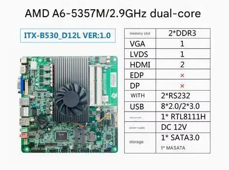 A6-5357M Mini-ITX Motherboard Onboard CPU A70 IPC SBC Embedded Ultra-thin Mainboard with 2COM LAN DC-12V VGA LPT DDR3 LVDS