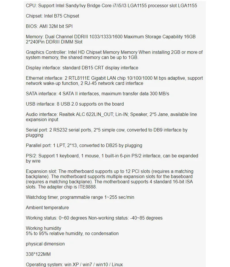 B75 Full size CPU Card New IPC Board 3th CPU ISA Industrial Mainboard PICMG 1.0 supports LGA1155 Sandy Ivy Bridge Processor