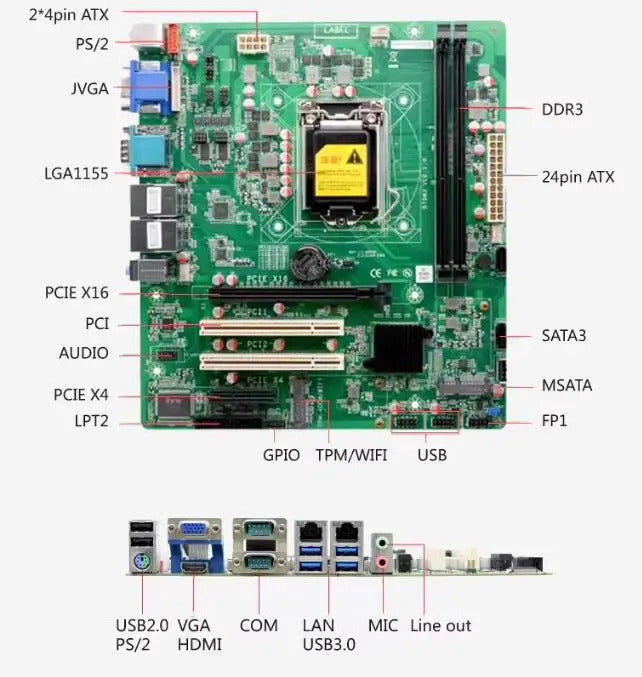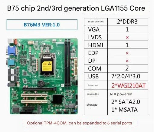 B75 Q77 Motherboard Micro ATX SBC 2nd/3rd i3/i5/i7 LGA1155 Desktop CPU IPC Industrial Mainboard with 2*COM 2*LAN LPT PS/2 PCI