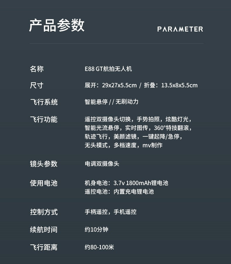 For specific drone parameters, please refer to the response from customer service; the e-commerce images are for reference only!