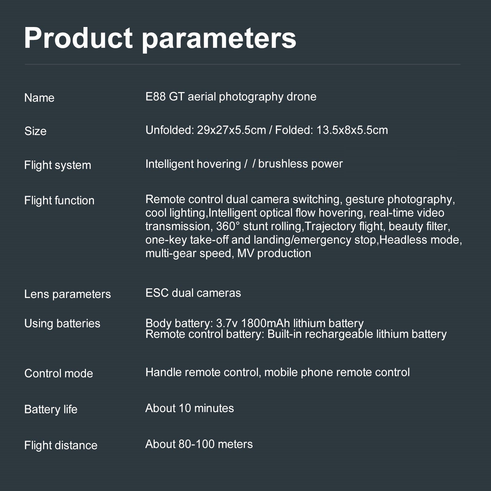 Cross-Border E88 GT Drone with Large Screen ESC Dual Camera HD Aerial Photography Optical Flow Long Battery Life Remote Control Aircraft Toy