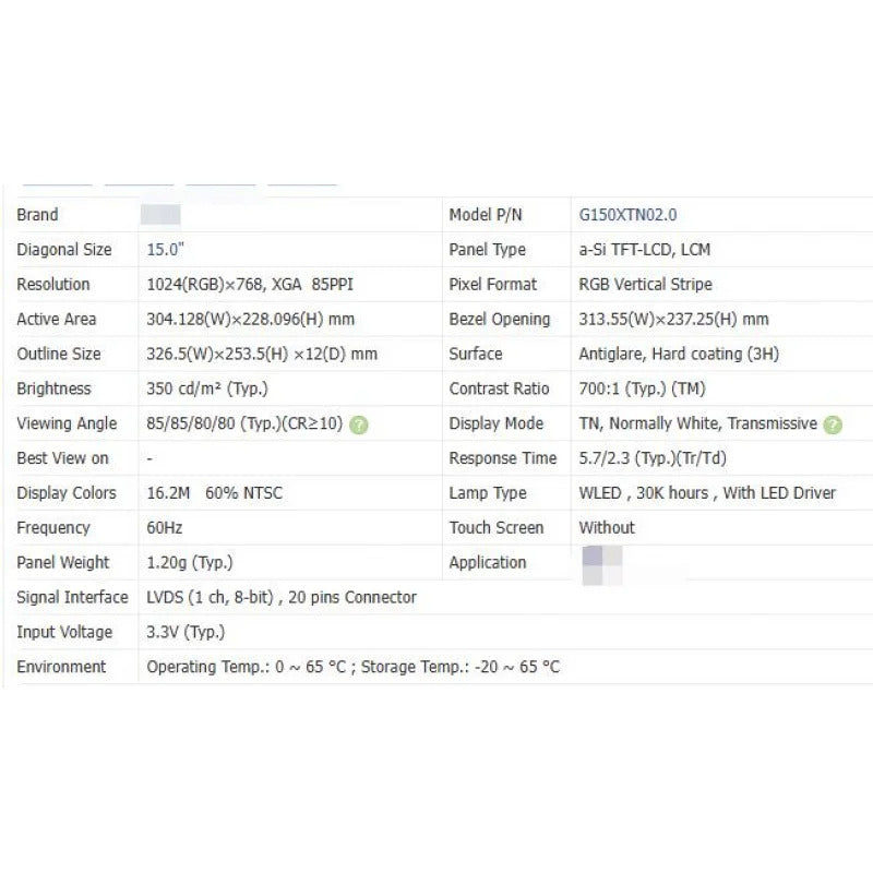 G150XTN02.0 Brand new original 15-inch LCD screen