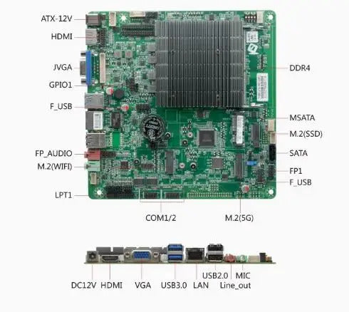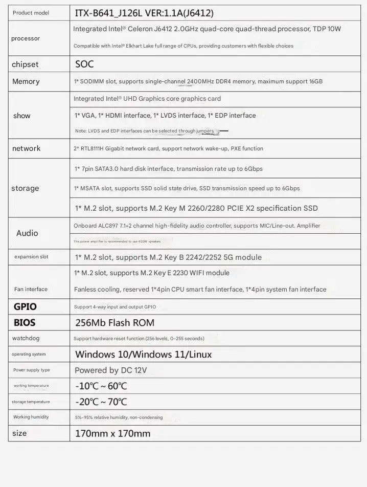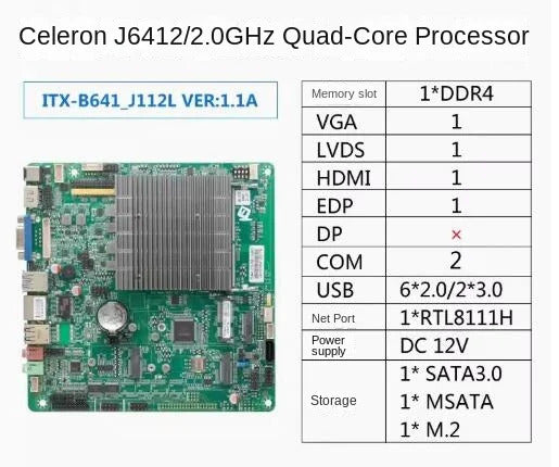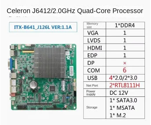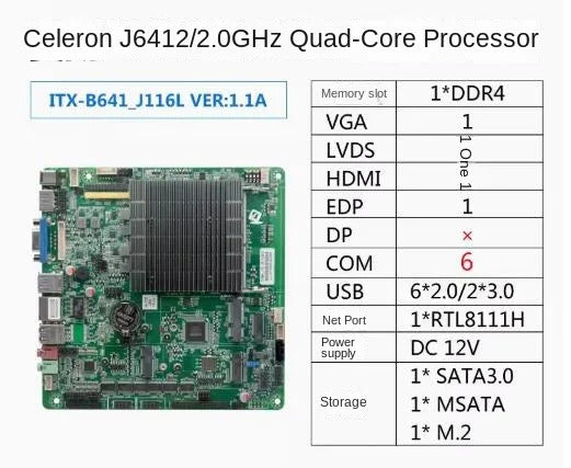 J6412 Mini-ITX Motherboard Celeron Intel CPU IPC SBC Embedded Fanless Ultra-thin Mainboard with COM LAN LPT DC-12V DDR4 EDP LVDS