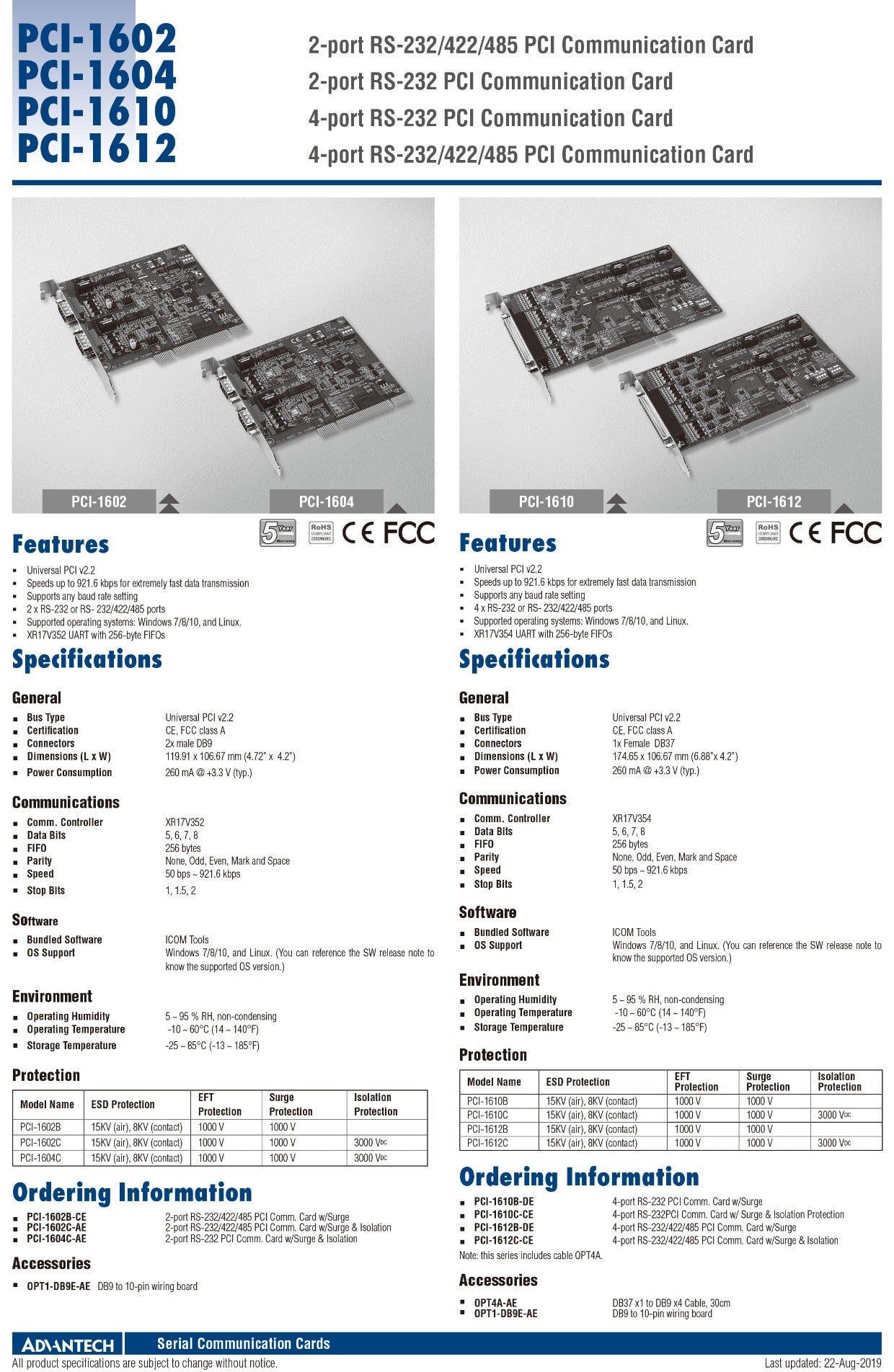 PCI-1602C/1602B Industrial Communication Card 2 Ports RS-232/485 Including Isolation PCI Communication Card
