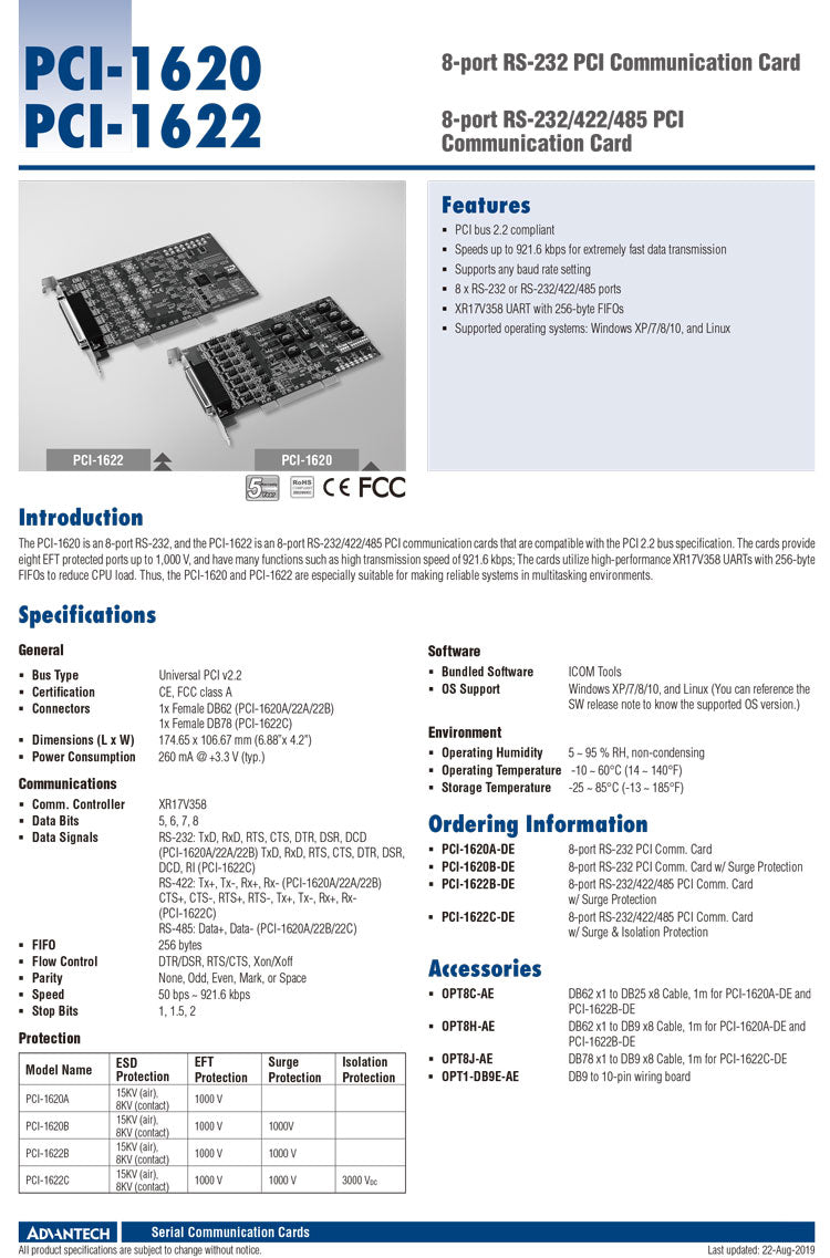 PCI-1620A/PCI-1622 Advantech 8-port RS-232 PCI Communication Card RS-485 Data Flow Automatic Control
