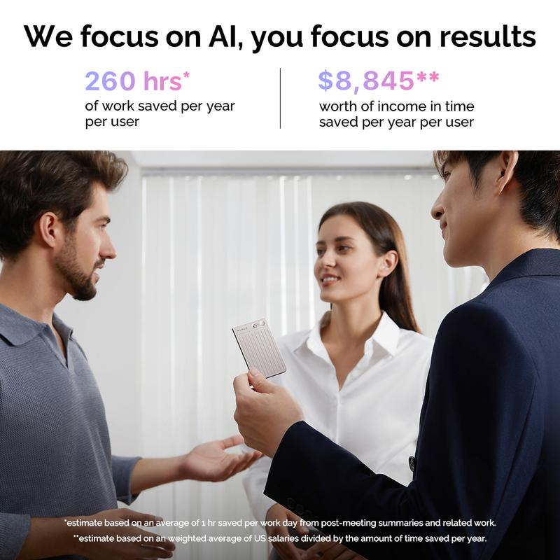 COMPATIBLE WITH PLAUD APP & WEB: PLAUD App and Web provide unlimited cloud storage to manage, share, and export recordings, transcriptions, and summaries, fostering team collaboration and boosting productivity.
