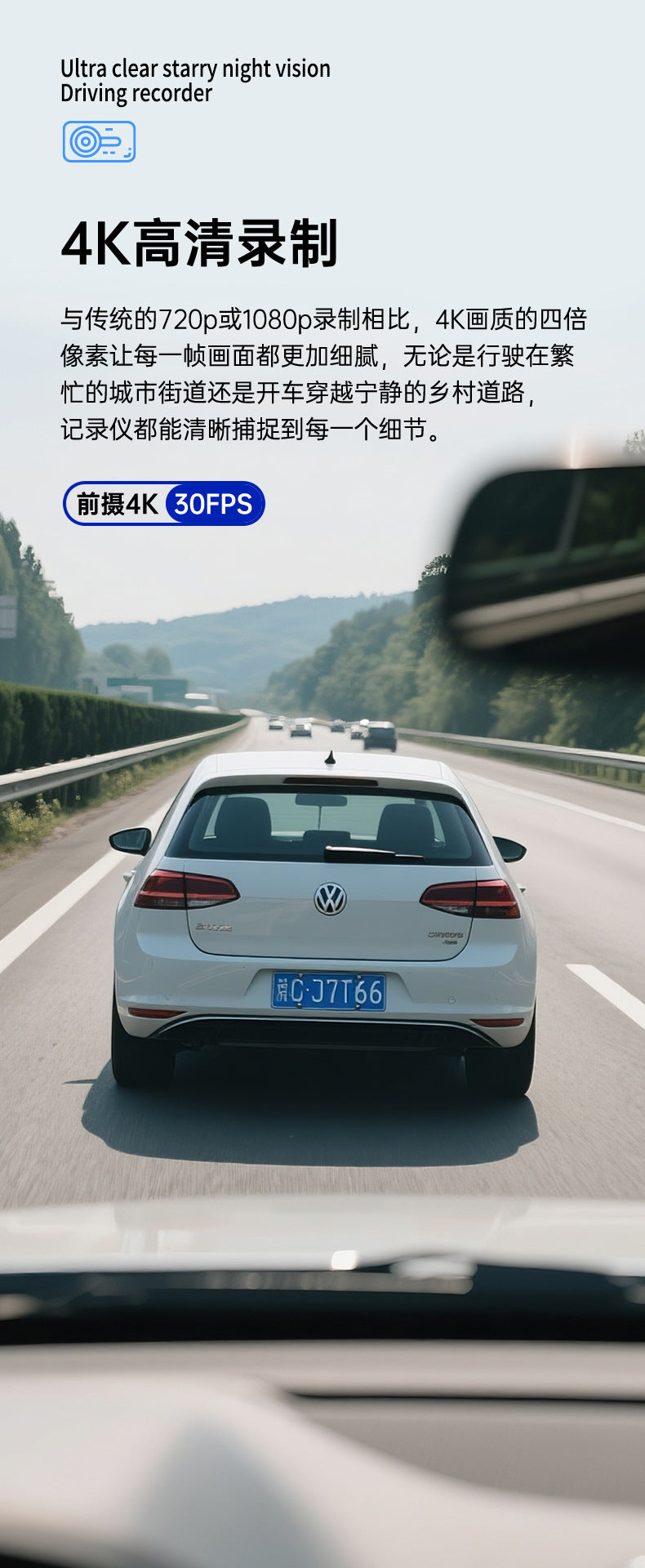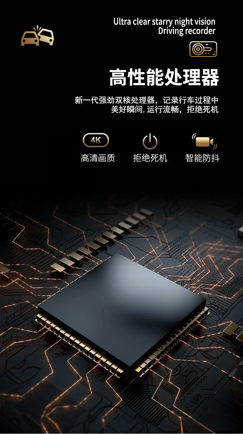 Private Model4K Ultra HD Recorder No-installation Night Vision Parking Monitoring GPS Dual Lens Dash Cam