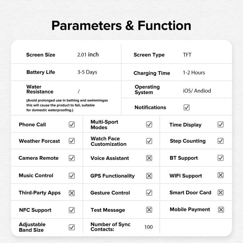 SIMSONLAB 2.01 Inch Smart Watch with Silicone Case, Fashionable Wearable Device for Men & Women, Support BT Calling and NFC Function, Multi-sport Modes Fitness Tracker