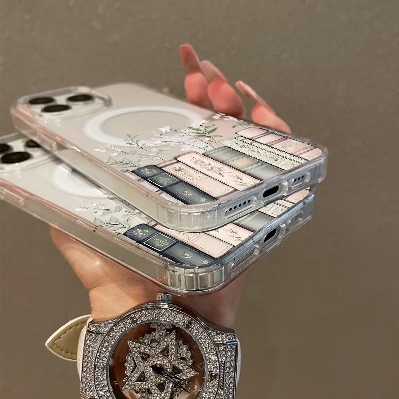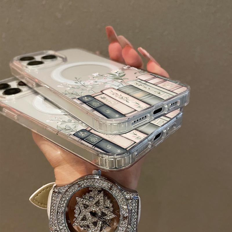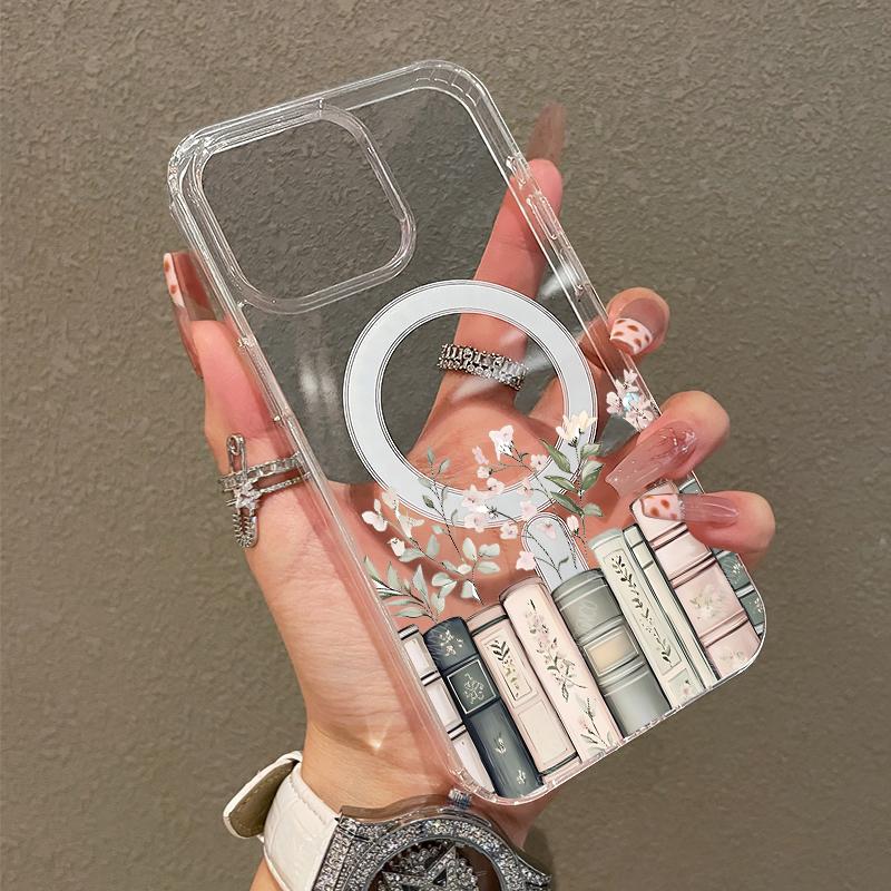 Soft Girl Magnetic Case for iPhone11/12/13/14/15/16/17/promax, Floral Bookshelf Lightweight, Drop-Proof, MagSafe Compatible | Perfect for Teen Girls
