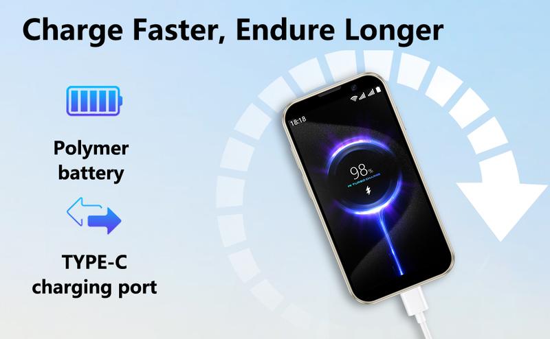 Measuring 3.7*1.9*0.5 inches and weighing 0.3LB, this 3.0-inch HD Touch Screen smartphone fits easily in any pocket.Its size is comparable to a bank card, making it portable and convenient for one-handed operation.