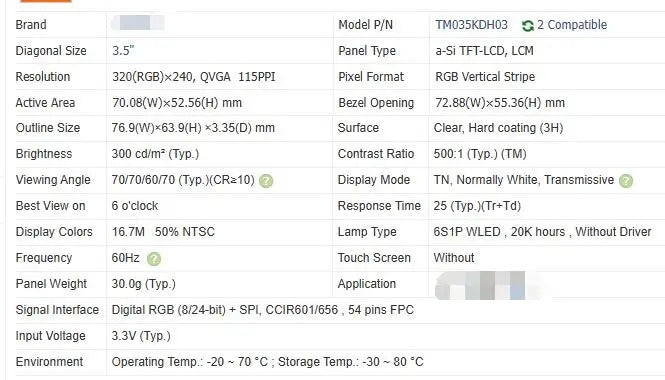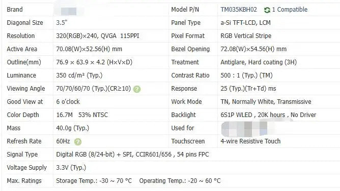 TM035KDH03 TM035KDH04 TM035KBH02 3.5-inch Original LCD Display Screen