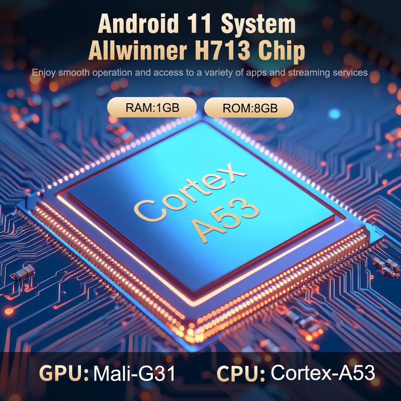 Allwinner H713 Chipset – Ensures smooth operation and faster app loading for a seamless entertainment experience.