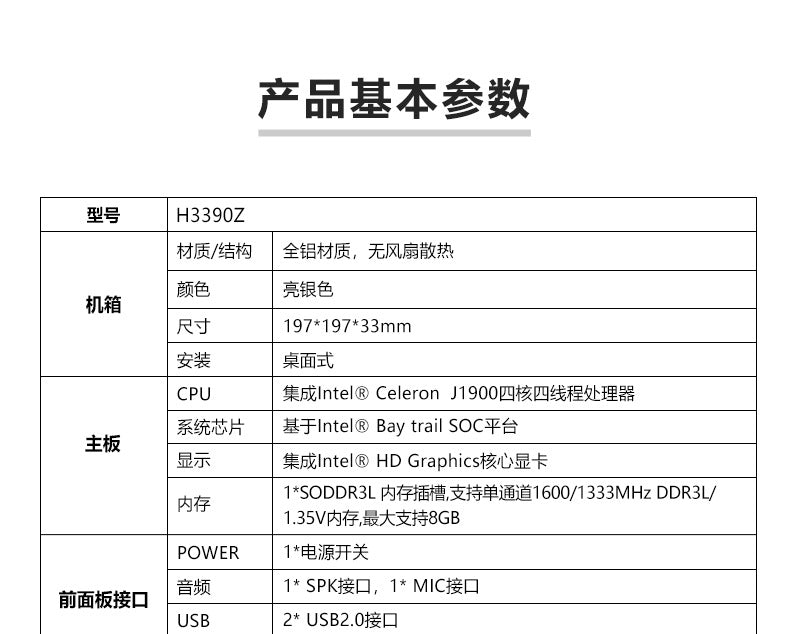 Industrial Control H3390 Single Network Port J1900 Mini Host HTPC Commercial Computer Small Industrial Control Machine Small Host