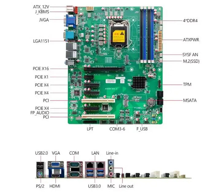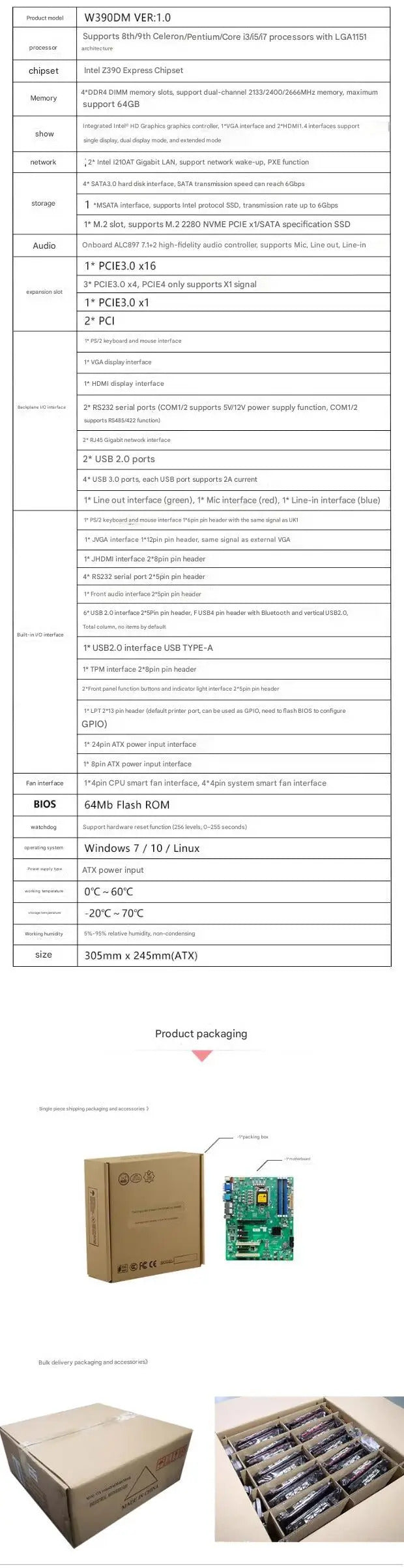 Z390 Motherboard ATX SBC 8/9th Core i3/i5/i7/i9 LGA1151 Desktop CPU IPC Industrial Mainboard with 6*COM 2*LAN DDR4 LPT VGA 5PCIE