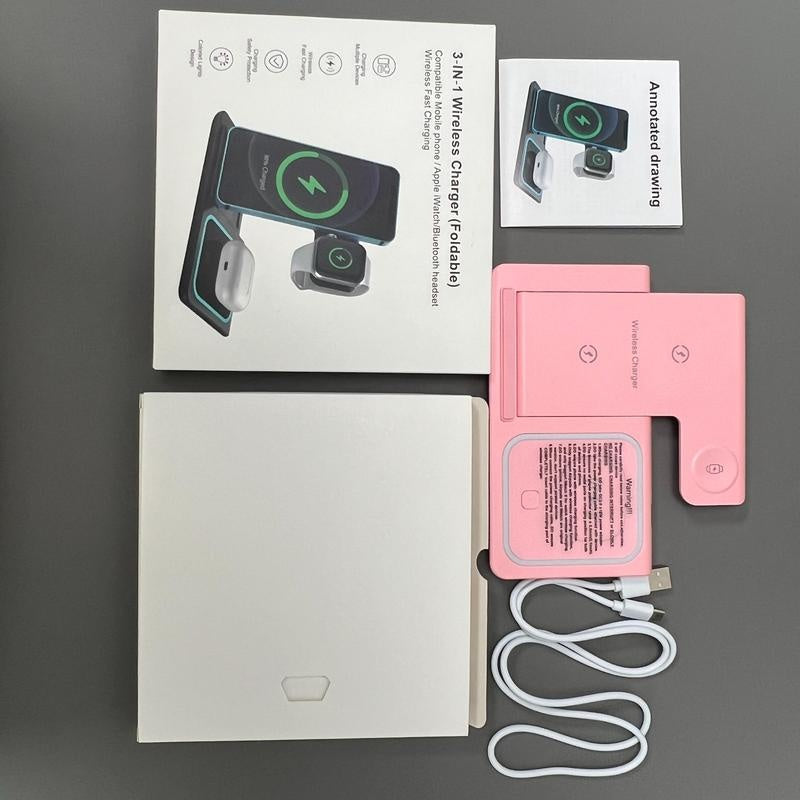 3-in-1 Wireless Charger, 15W Fast Wireless Charger, Foldable & Portable Design Wireless Charging Station for iPhone & Samsung Phone & iWatch & AirPods Series