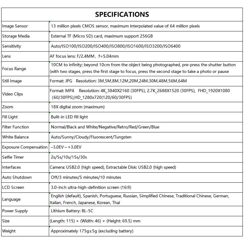 【4K Video Capture】: Offering 4K resolution for video recording, this digital camera ensures your moments are captured with vivid clarity and detail.