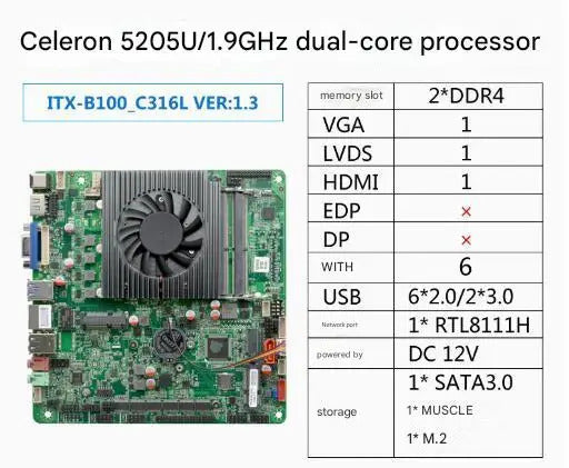 5205u Mini-ITX Motherboard 10th Celeron Intel CPU IPC SBC Embedded Ultra-thin Mainboard with 6COM LAN DC12V DDR4 6USB LVDS