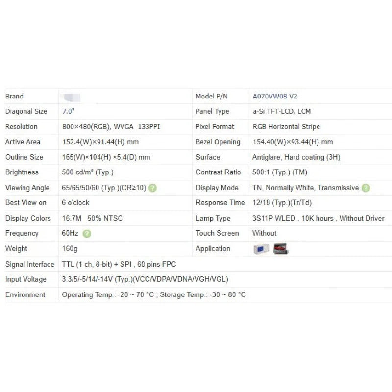 A070VW08 V2 Brand New Original 7 Inch LCD Screen