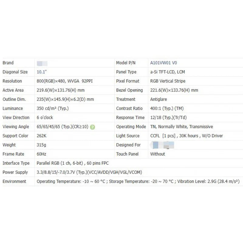 A101vw01 V0 brand new original 10.1 inch LCD screen