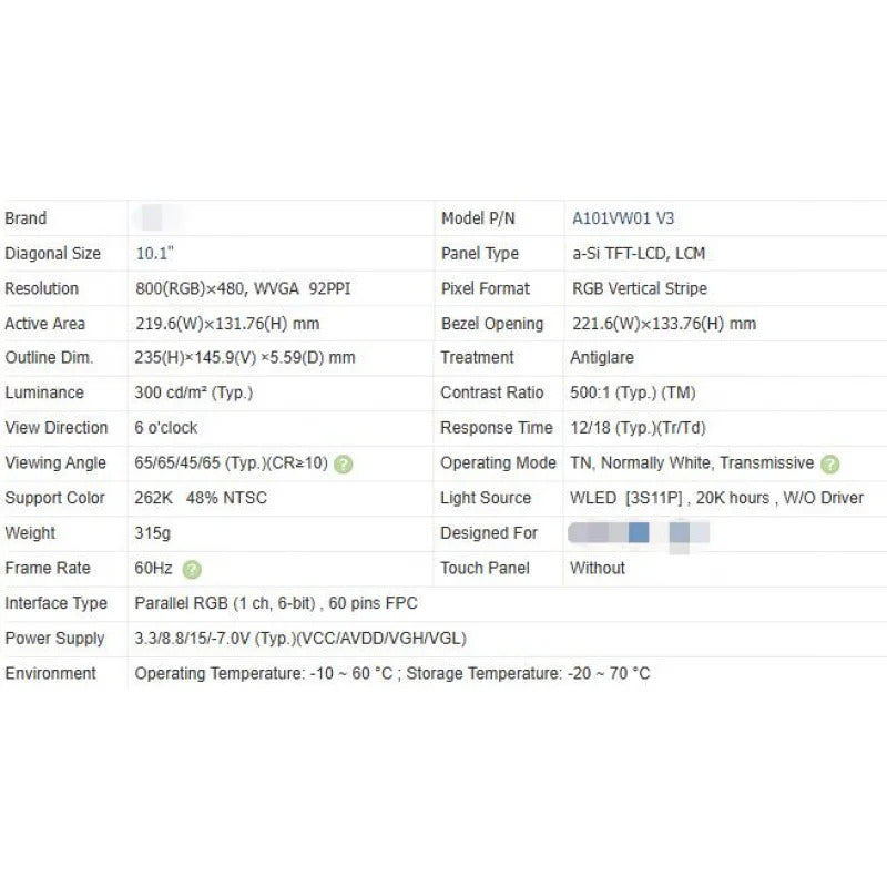 A101vw01 V3 brand new original 10.1 inch LCD screen