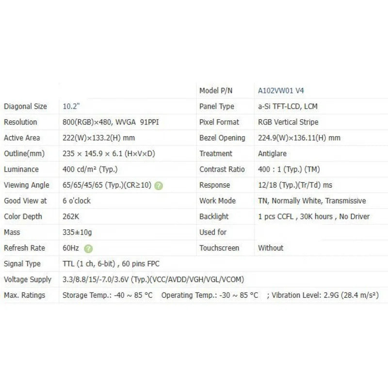 A102vw01 V4 brand new original 10.2 inch LCD screen