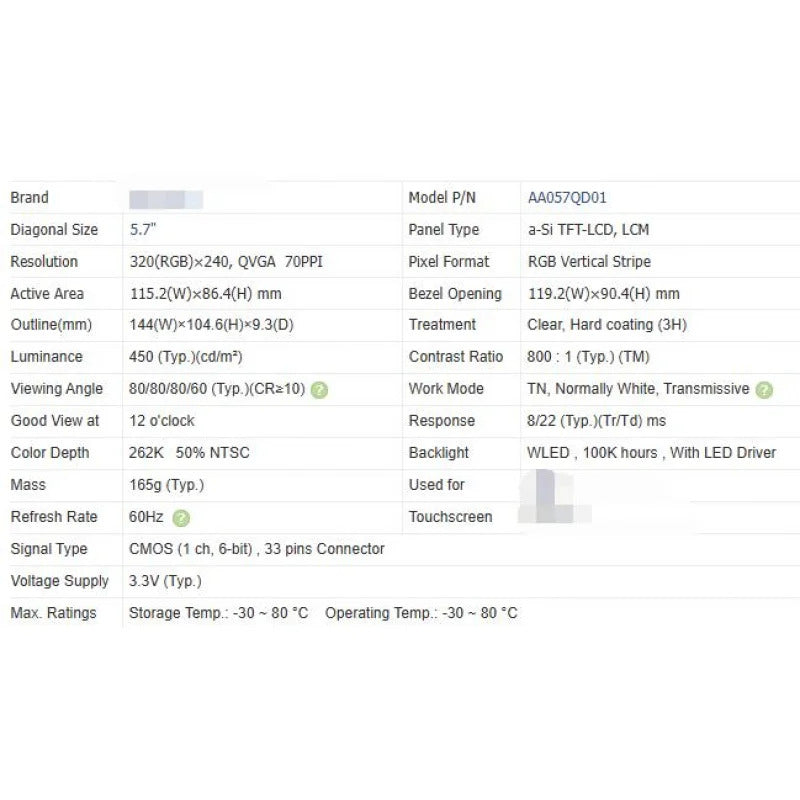Aa057qd01 new original 5.7 inch LCD screen