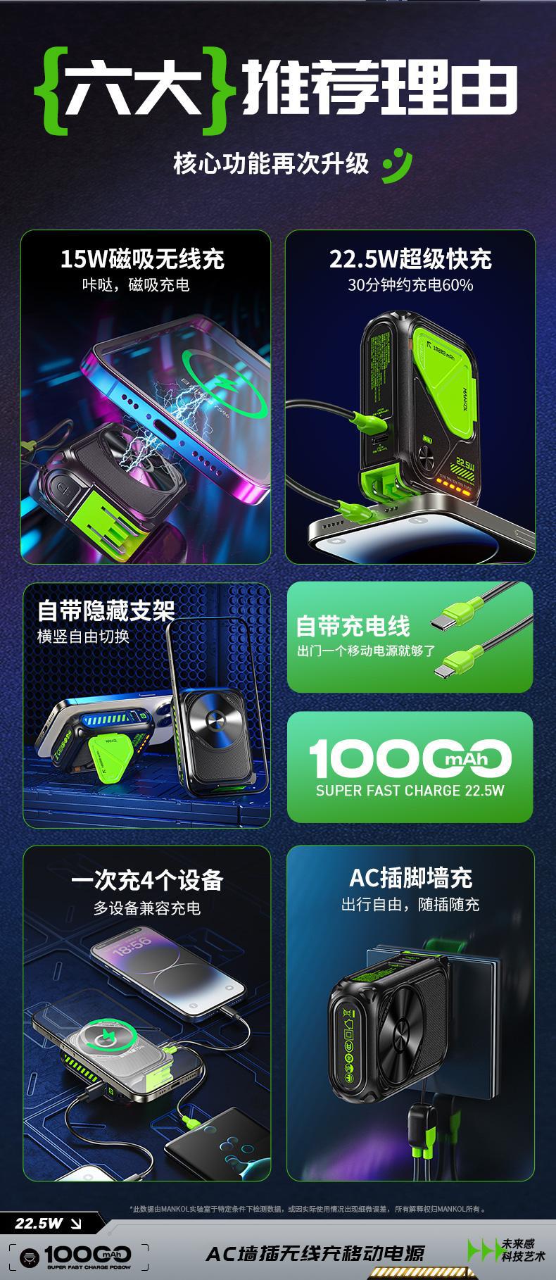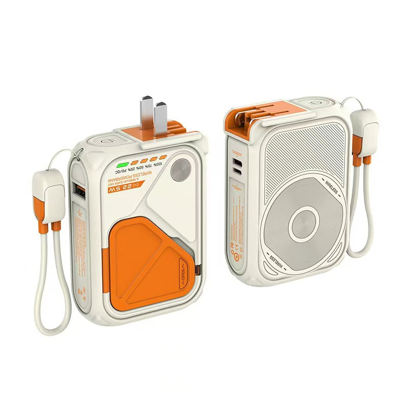 AC Plug Charger20000Ma 5-in-1 Wireless Magnetic Charging22.5W Fast Charging Built-in Cable Portable Power Bank