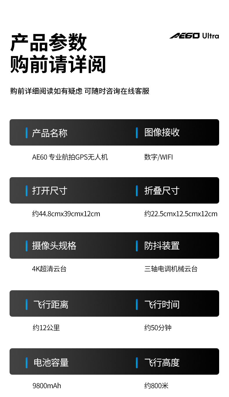 For specific drone parameters, please refer to the response from customer service; the e-commerce images are for reference only!