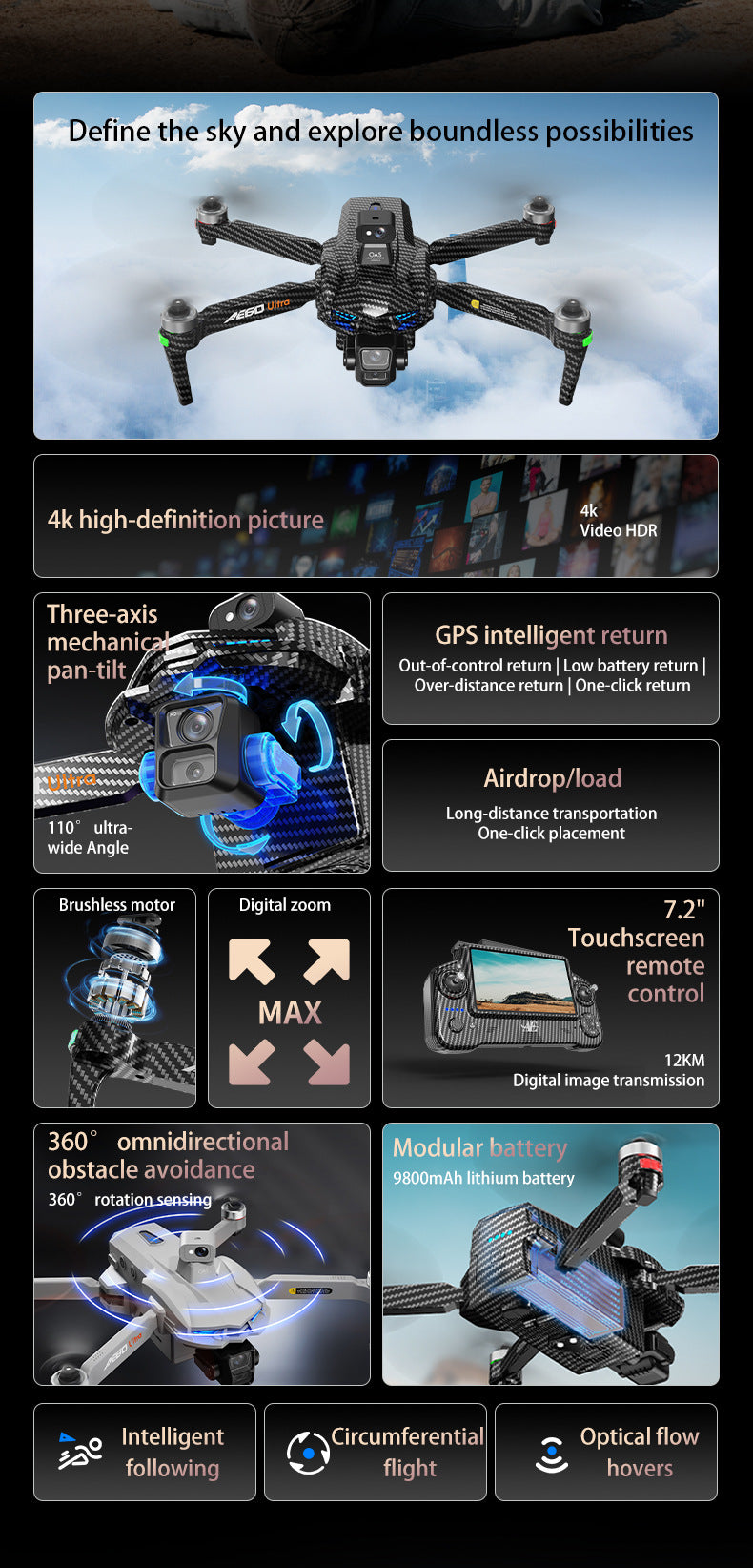 AE60High-definition professional aerial photography drone with touchscreen, digital image transmission, automatic return, and airdrop capability GPS Remote control aircraft