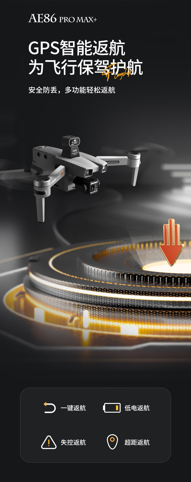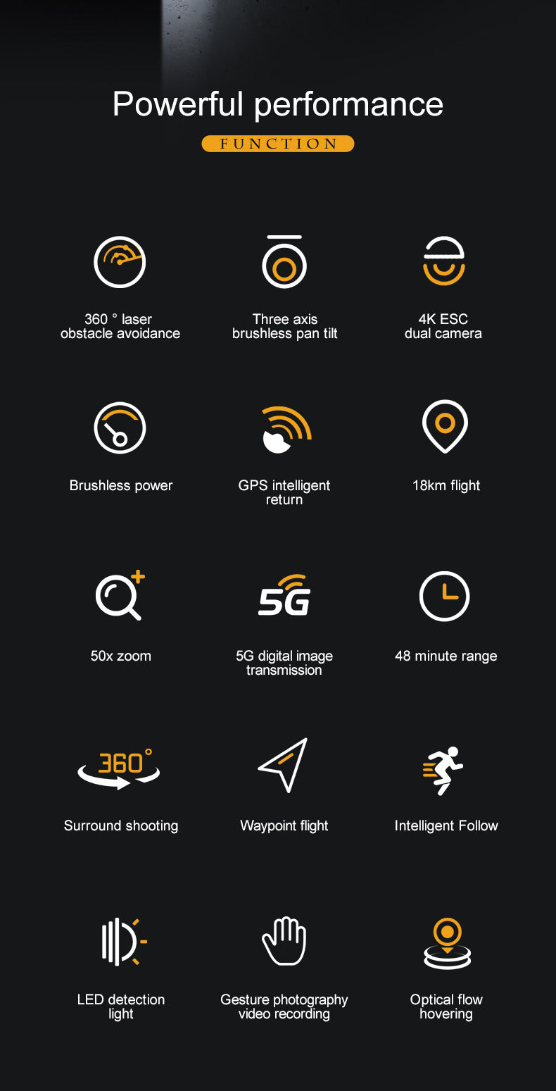 Function introduction: Three-axis mechanical stabilization gimbal + electronic stabilization anti-shake + laser obstacle avoidance