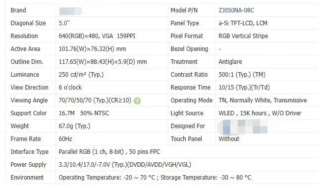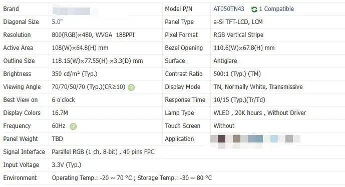 AT050TN43 ZJ050NA-08C 5-inch Original LCD Display Screen
