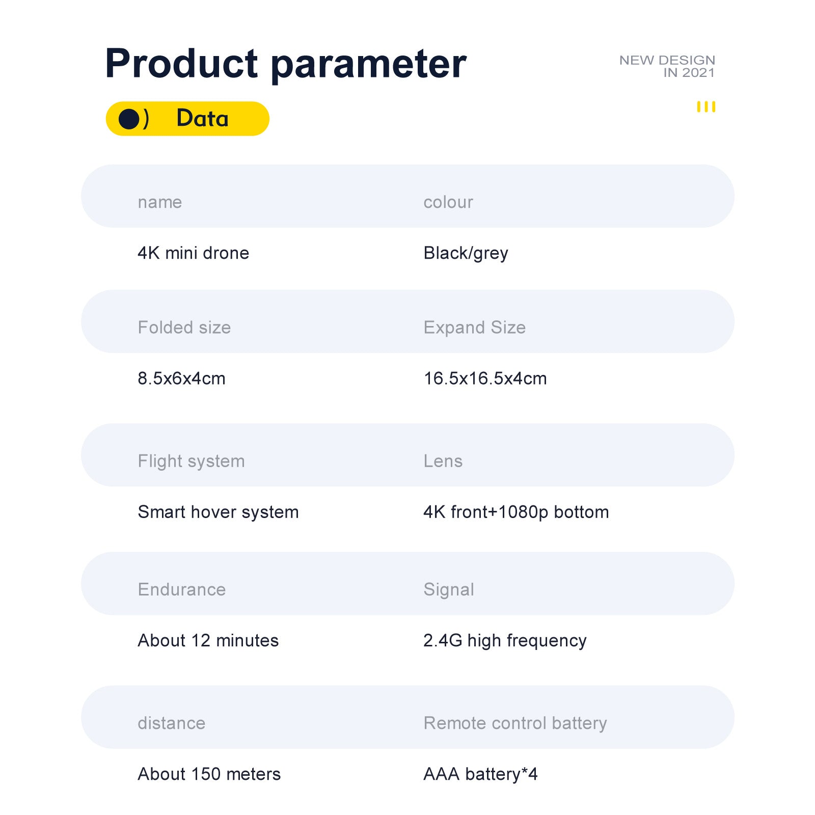 | Complete set | Drone*1 Remote Control*1 Battery*1 Phone Clip*1 Propeller*4 Protective Ring*4 USB Cable*1 User Manual*2 Screwdriver*1 |