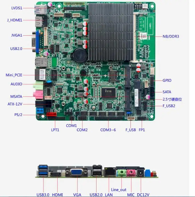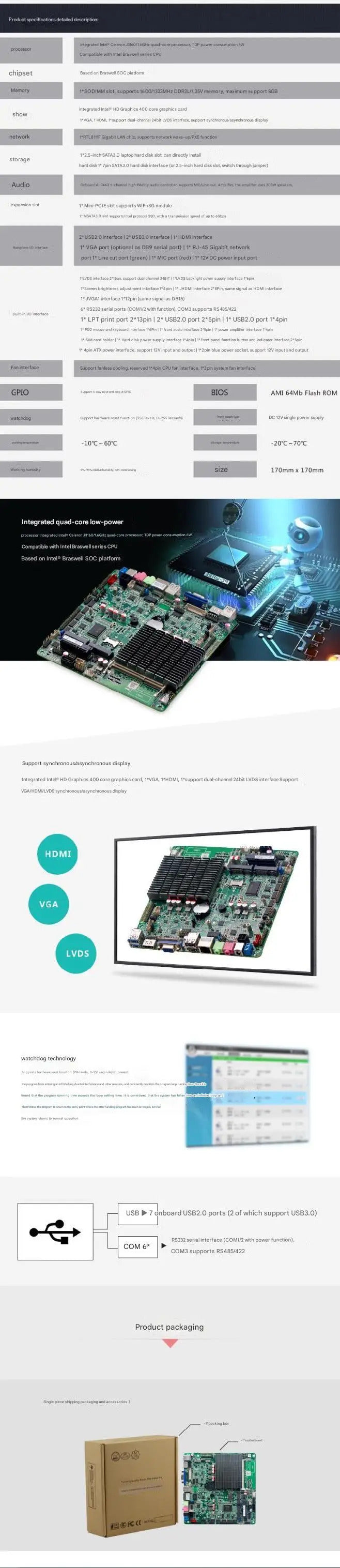 J3160 Mini-ITX Motherboard Celeron Intel CPU IPC SBC Embedded Fanless Ultra-thin Mainboard with 6*COM LAN LPT PS/2 DC-12V DDR3