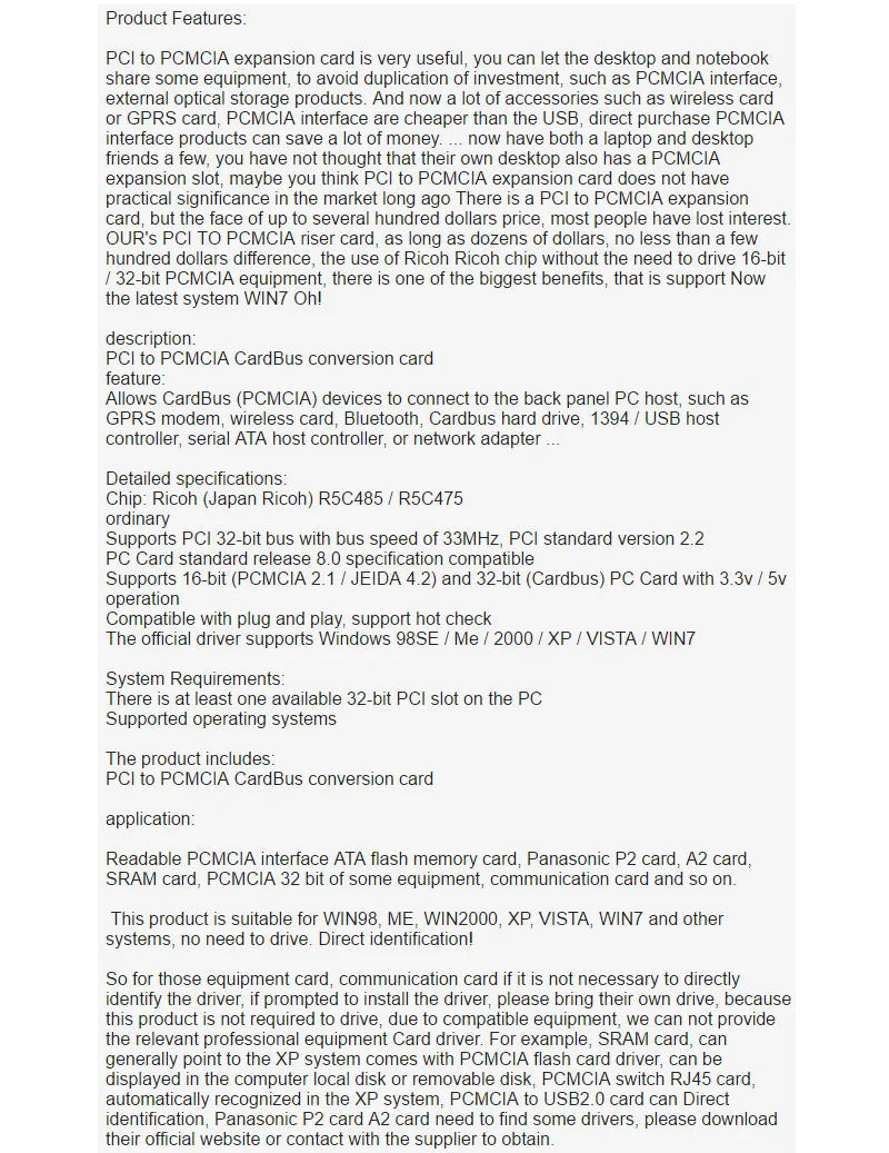 PCI to PCMCIA P2CB485 New PCI-PCMCIA PC Card ATA P2 A2 Card SRAM card Reader supports 16/32bit CARDBUS functioRicoh R5C485 Chip