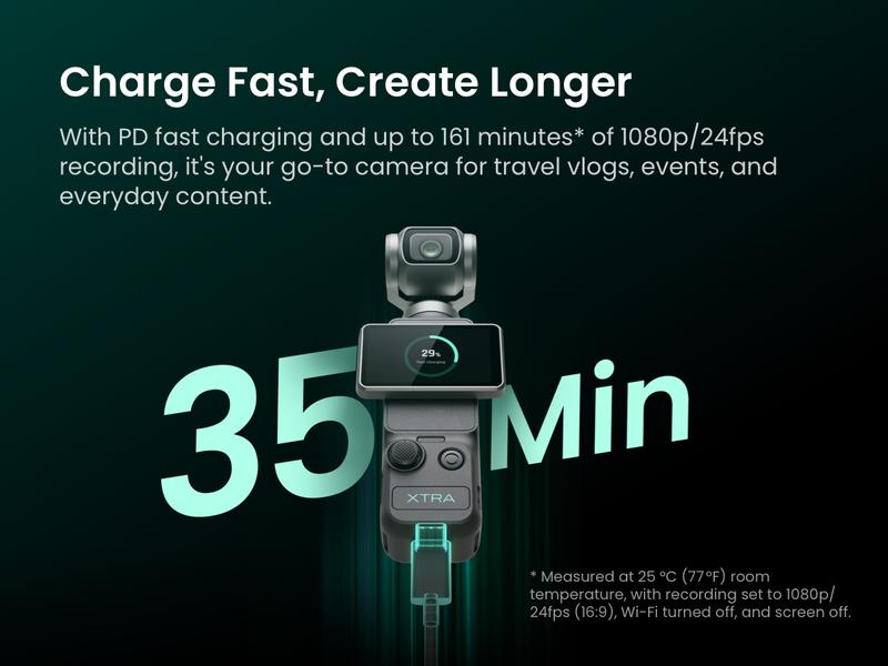 The Xtra Muse Vlogging Camera is a portable handycam camcorder equipped with a 1'' CMOS sensor.It captures 4K/120fps videos, ensuring smooth and high-definition footage.The 3-axis gimbal stabilizer provides stable shots, while fast focusing and face/object tracking enhance shooting convenience.Perfect for vloggers, this camera is designed for easy use and versatile recording.