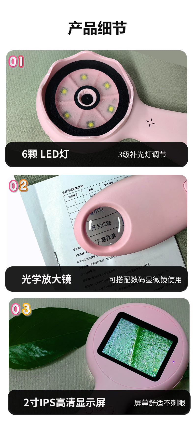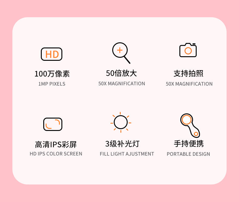 Features: 2.0" IPS screen + magnifying glass + camera + 8M + 50x magnification