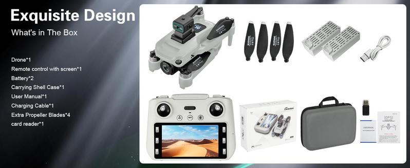 Large Display Screen Remote Controller & Additional Features: The remote controller comes with a large display screen, body battery level display, waypoint flight, orbit mode, follow me mode, photo and video capture,music addition, etc.