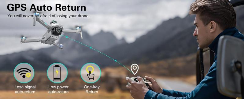 4K Dual HD Cameras & Real-Time Transmission: The quadcopter is equipped with dual 4K cameras, allowing you to capture high-quality photos and videos from different perspectives.