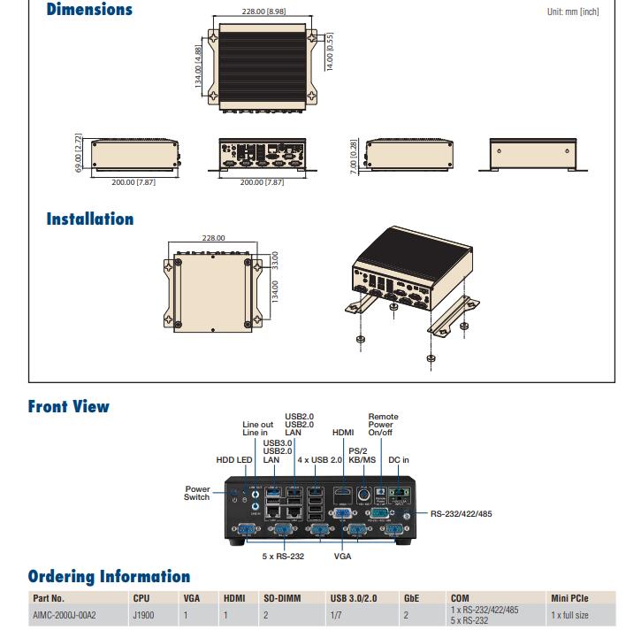 AIMC-2000 Fanless Embedded Industrial Computer Mini Industrial PC Quad-core J1900 SoC with VGA 6COM 8USB 2LAN DC-12V