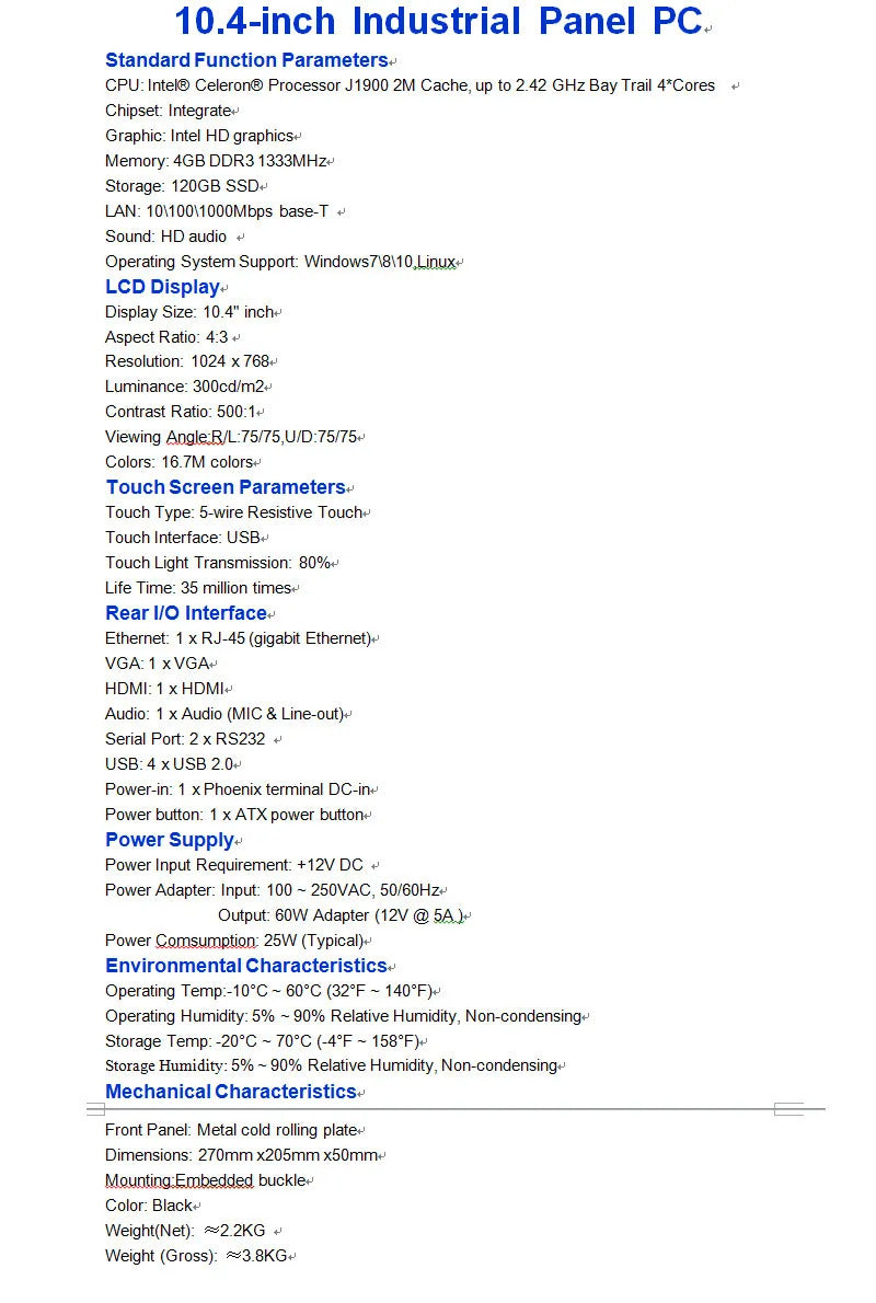 AP1042C-1024-J1900 industrial touch panel PC For Intel J1900 CPU 4GB RAM 120GB SSD LAN RS232 1024X768 LCD Industrial Tablet