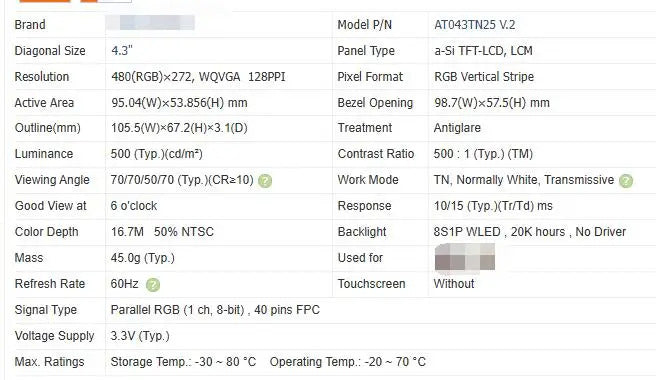 AT043TN24V.7 AT043TN25V.2 4.3-inch Original LCD Display Screen