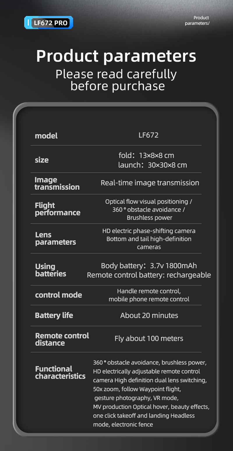 For specific drone parameters, please refer to the response from customer service; the e-commerce images are for reference only!
