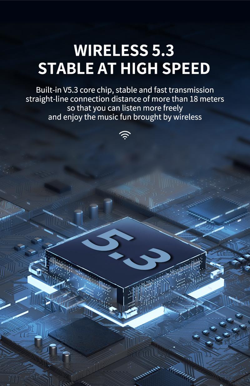 Bluetooth V5.3 Connectivity: Enjoy stable and fast transmission with a built-in v5.3 core chip, allowing for a straight-line connection distance of over 18 meters, ensuring freedom of movement while listening to music.