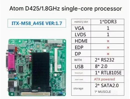 D425 Mini-ITX Motherboard New Original ATOM Intel CPU IPC SBC Embedded Mainboard with 2*COM 1*LAN LPT PS/2 For POS ATX power