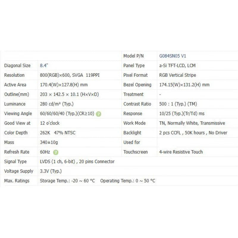G084sn05 V1 new original 8.4 inch LCD screen