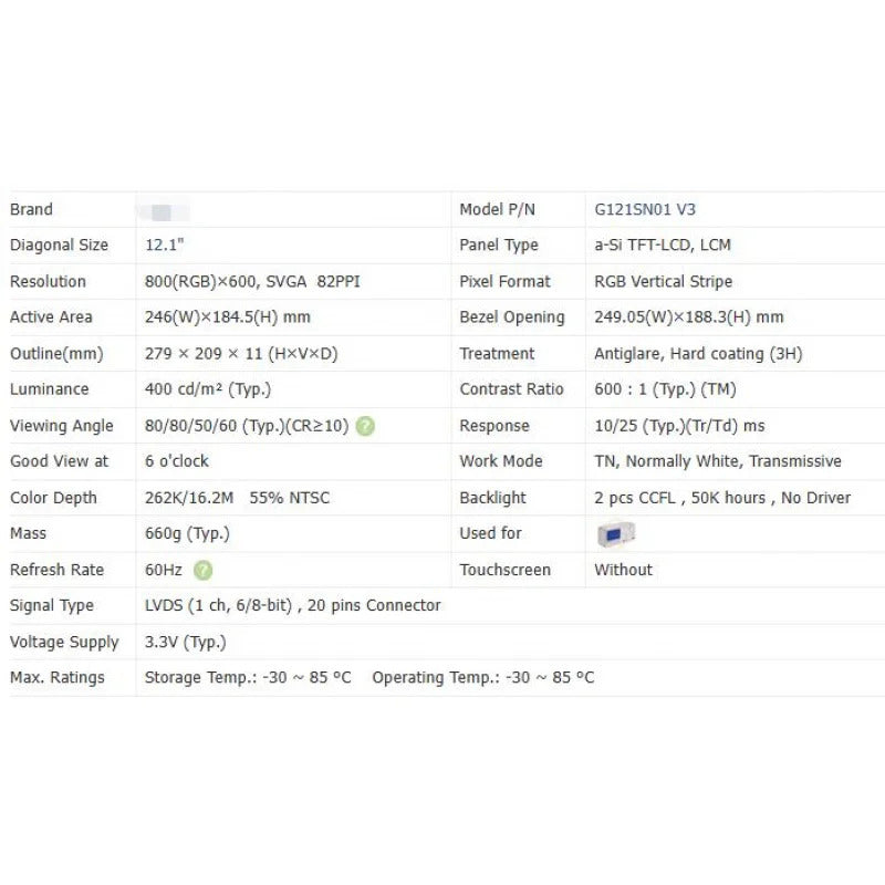 G121SN01 V3 Brand New Original 12.1 Inch LCD Screen