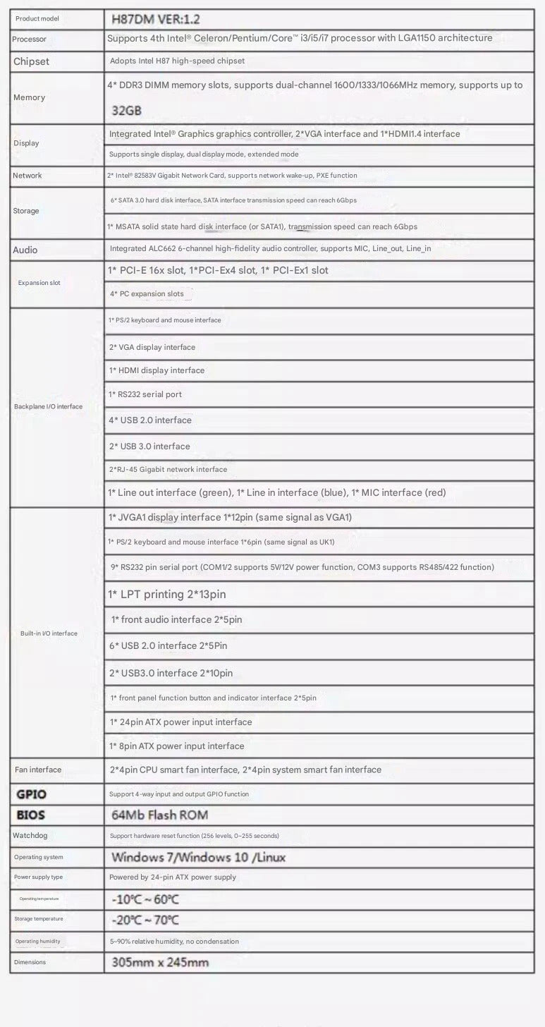 H87 Motherboard ATX SBC 4th Core i3/i5/i7 LGA1150 Desktop CPU IPC Industrial Mainboard with 10*COM 2*LAN DDR3 LPT 2*VGA PS/2
