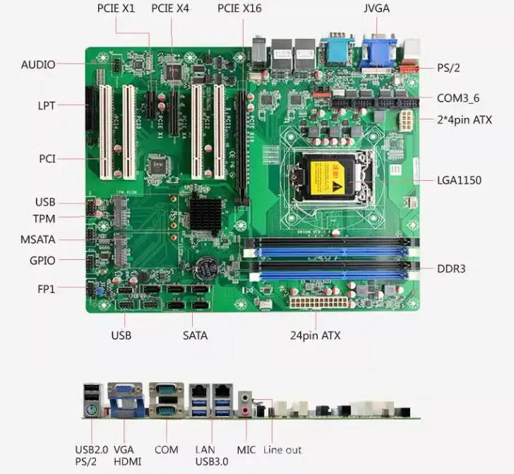 H87 Motherboard ATX SBC 4th Core i3/i5/i7 LGA1150 Desktop CPU IPC Industrial Mainboard with 6*COM 2*LAN DDR3 LPT VGA PS/2 4*PCI